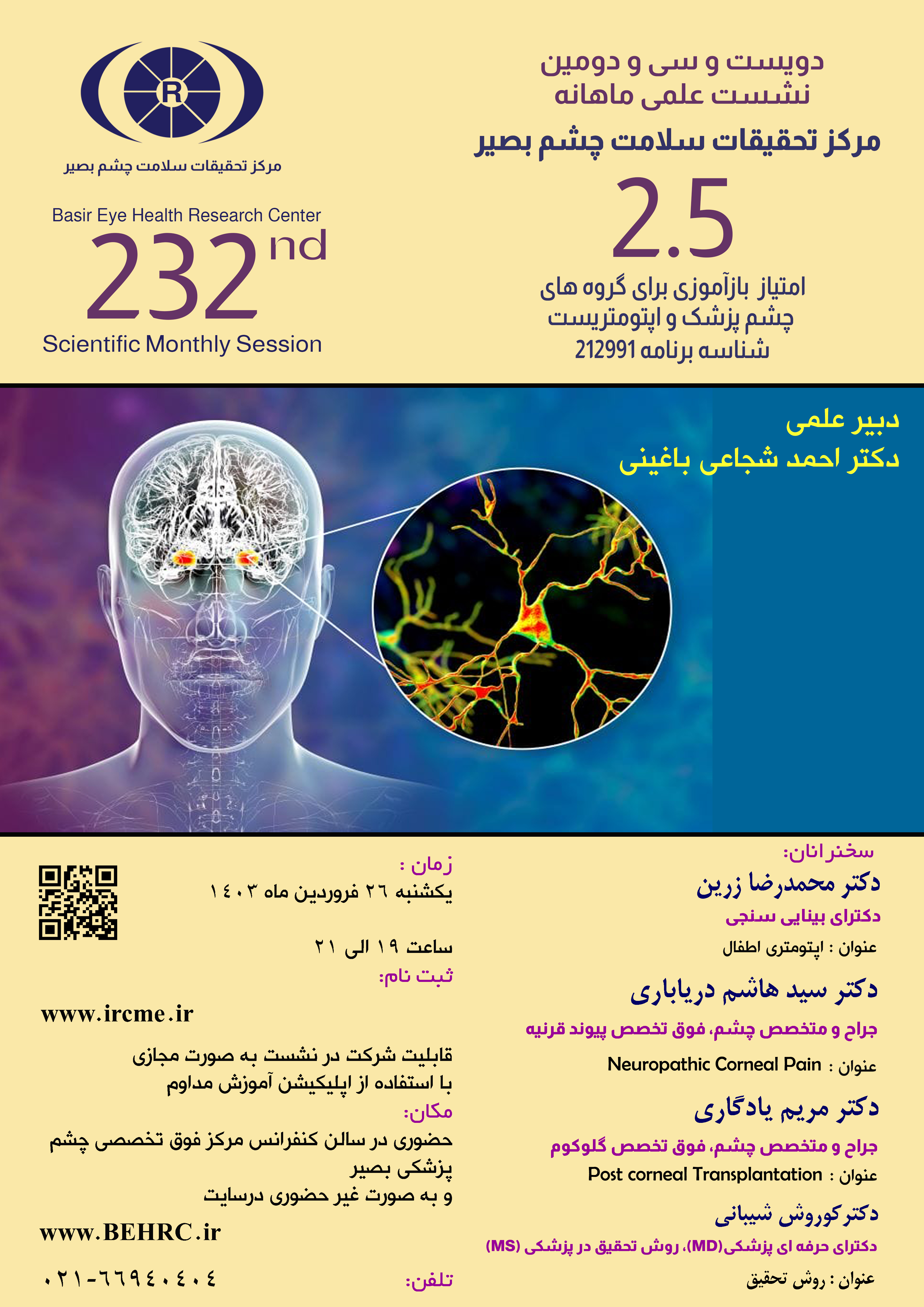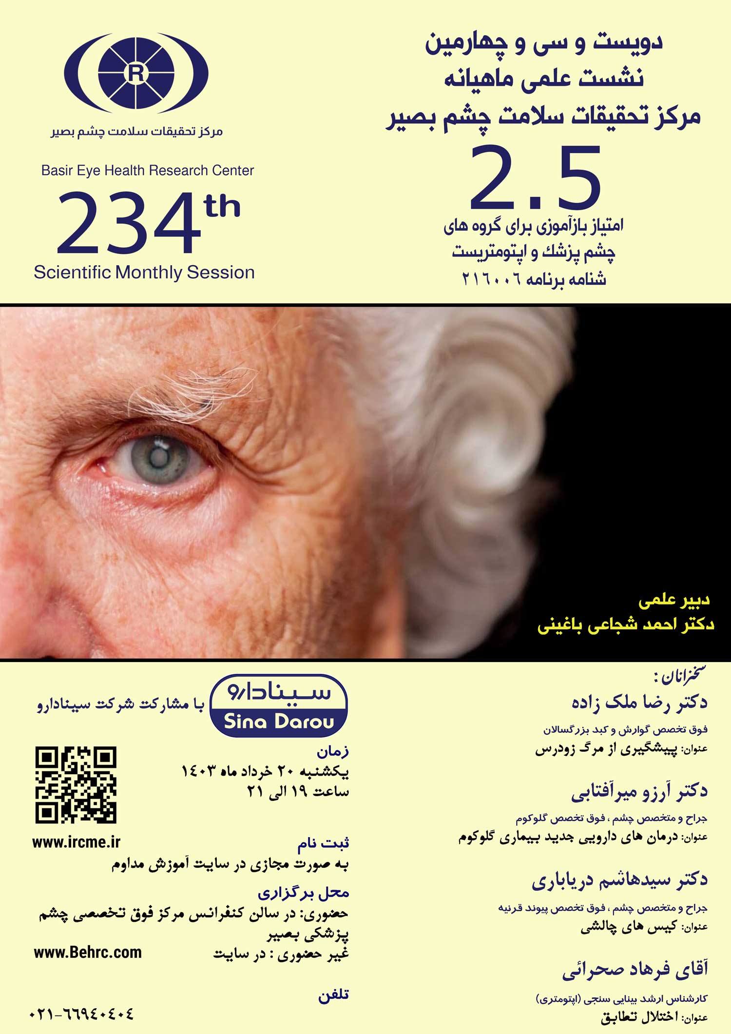 دویست و سی و چهارمین نشست علمی ماهیانه مرکز تحقیقات سلامت چشم بصیر